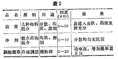 膠體磨近年來也廣泛地應(yīng)用在制藥行工各種藥膏、沖劑和乳液,其用途見表2