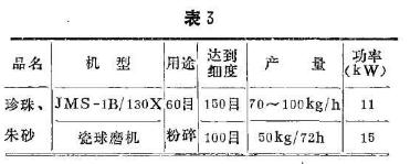 廊坊通用機(jī)械廠和北京同仁堂、天津第五中藥廠共同對珍珠、朱砂藥物的粉碎進(jìn)行了生產(chǎn)性能試驗(yàn),取得了較好的效果,見表 3。