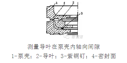 口之間存在的間隙。通常止口之間的配合間隙為0.04~0.08mm,若間隙大于0.10-0.12mm,就應(yīng)進(jìn)行修復(fù)。最簡單的修復(fù)方法是在間隙較大的泵殼公止口上均勻堆焊6~8 處,然后按需要的尺寸進(jìn)行車削。