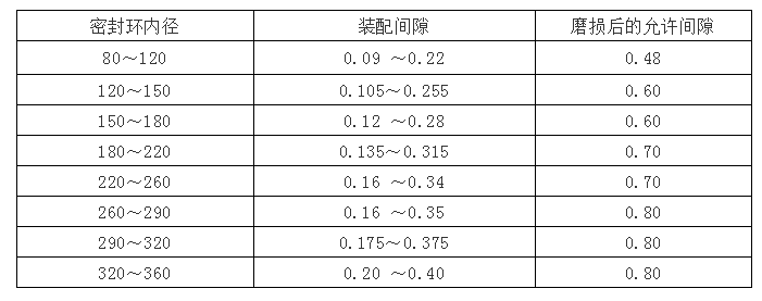 目前,密封環(huán)與導(dǎo)葉襯套一般都是用不銹鋼或錫青銅兩種耐磨材料制成的。選用不銹鋼制造的密封環(huán)與導(dǎo)葉襯套壽命較長,但對其加工及裝配的質(zhì)量要求很高,否則易于在運轉(zhuǎn)中因配合間隙略小、軸彎曲度稍大而發(fā)生咬合的情況。若用錫青銅制造,則加工容易,成本低,也不易咬死,但其抗沖刷性能相對稍差些。新加工的密封環(huán)和導(dǎo)葉襯套安裝就位后,與葉輪的同心度偏差應(yīng)小于0.04mm。密封環(huán)與葉輪的徑向間隙隨密封環(huán)的內(nèi)徑大小而不同,具體可參閱表2-3-1。密封環(huán)與泵殼的配合間隙一般為0.03~0.05mm。
