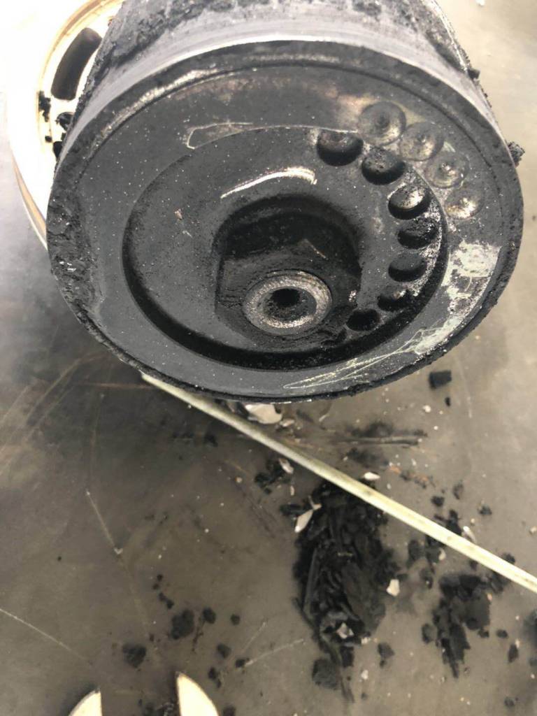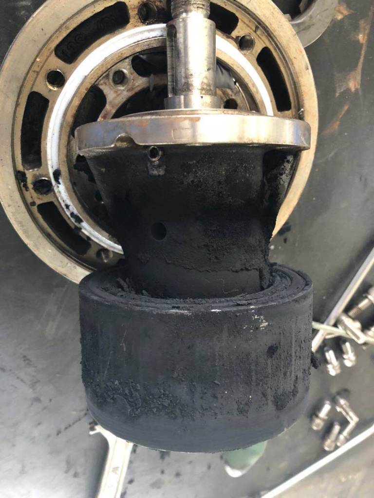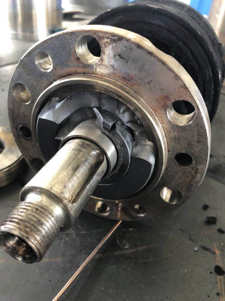 一臺磁力泵運(yùn)行了幾個(gè)小時(shí),中間還取了樣,停泵時(shí)有咔踏一聲響。再次開泵就開不來了,拆開后永磁體上一層碳粉、軸套破碎。