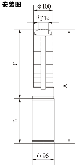 深井泵QJ系列30、不銹鋼深井泵 外形尺寸圖