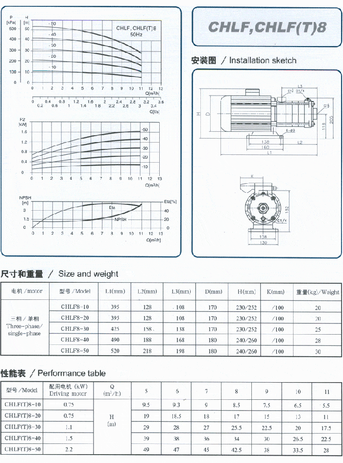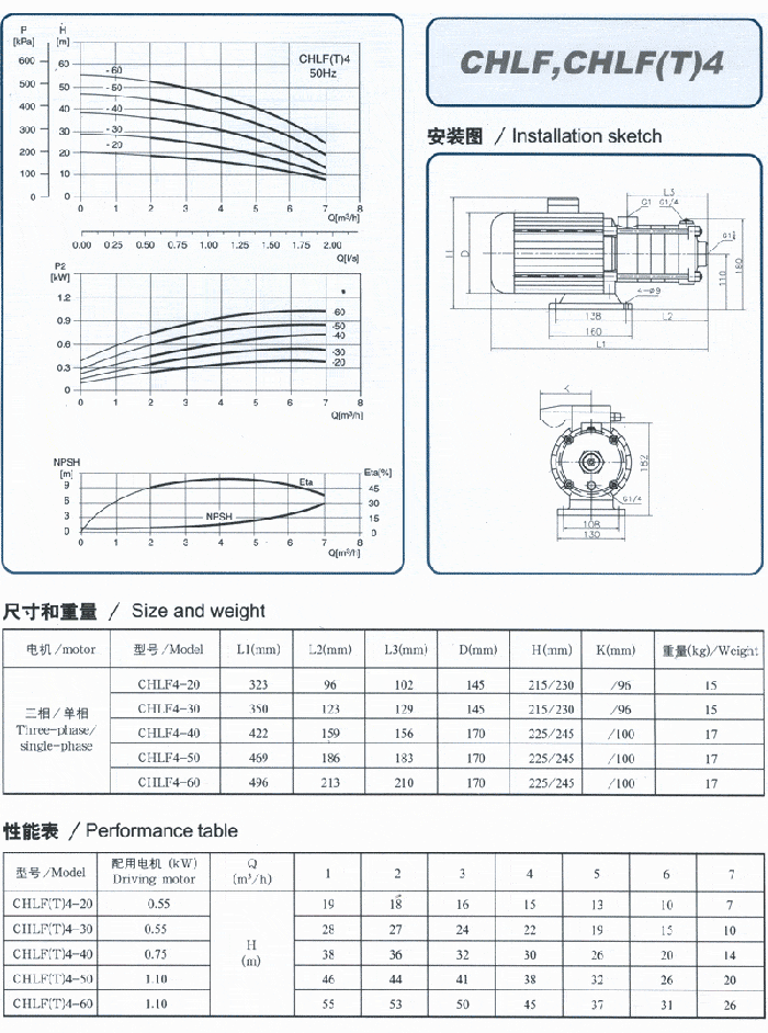 CHLF型輕型段式多級離心泵 :性能參數(shù)