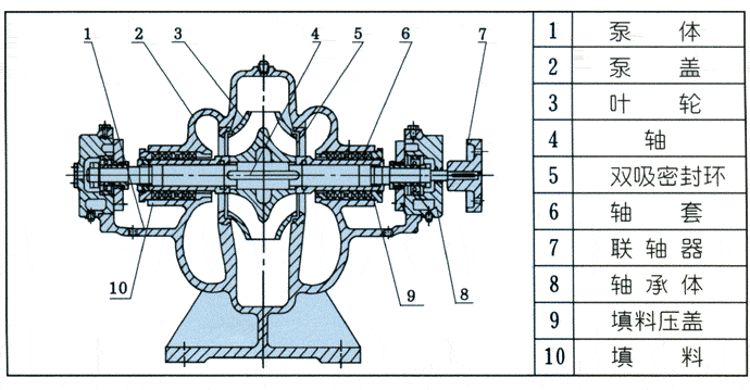 S、SH型單級(jí)雙吸泵結(jié)構(gòu)原理圖: