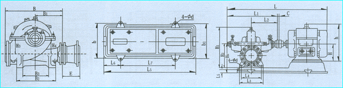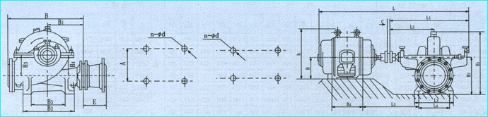 S、SH型單級(jí)雙吸泵外形安裝尺寸圖: