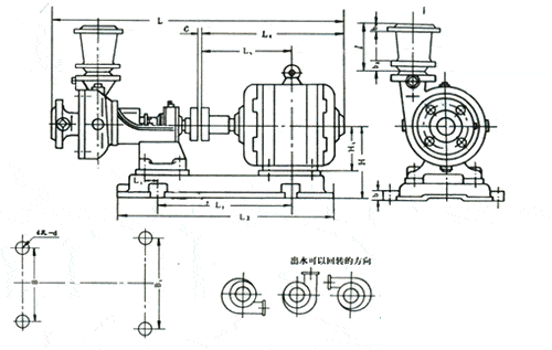 圖2代表16種BA型泵的外形圖,圖3是BA型泵的安裝圖,BA型泵的外形尺寸和安裝尺寸附列于后面。