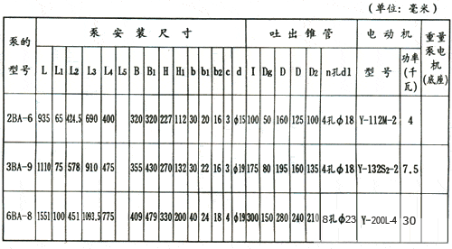 BA型單級(jí)離心泵外形安裝尺寸表: