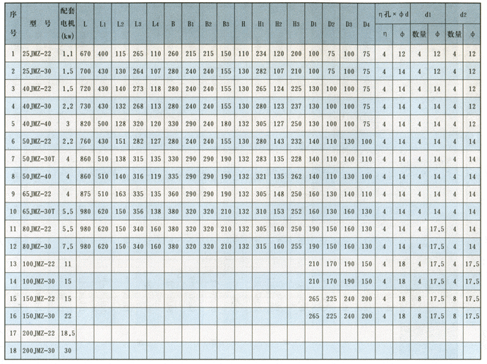 | 40JMZ-30 | 40 | 25 | 6 | 30 | 6 | 2960 | 2.2 |