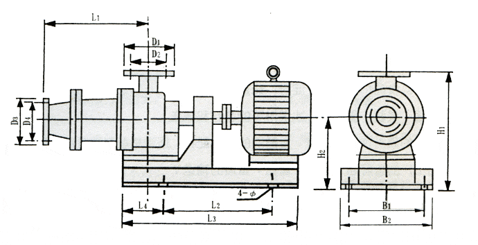 I-1B型濃漿泵外形安裝尺寸圖: