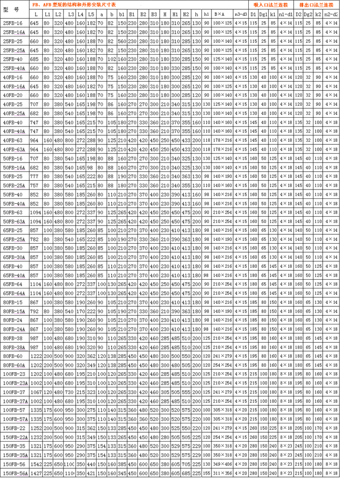 | 150FB-56 | 190.8 | 53 | 56 | 2900 | 55 | 2.5 |