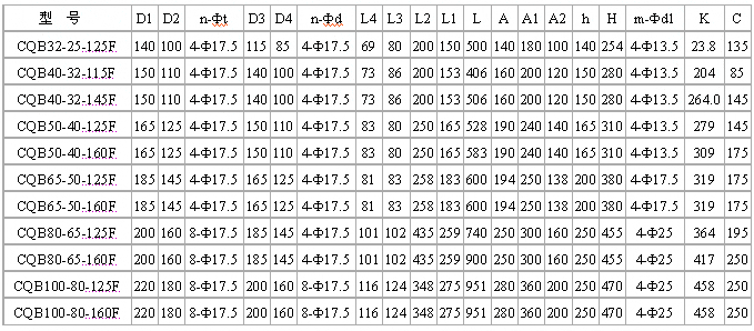 CQB-F氟塑料磁力泵外形安裝尺寸表: