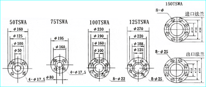 TSWA型臥式多級離心泵法蘭安裝尺寸圖: