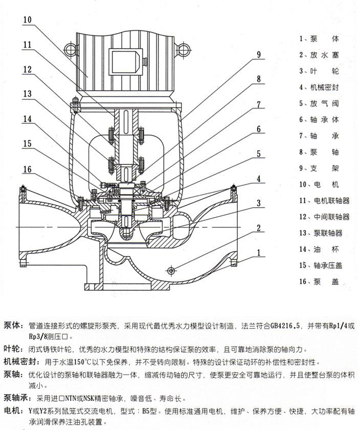 ISGB便拆立式管道泵是在ISG型管道離心泵的基礎(chǔ)上開發(fā)成功的一種結(jié)構(gòu)新穎,技術(shù)先進(jìn)的產(chǎn)品。 該立式管道泵特別是在整體結(jié)構(gòu)上進(jìn)行大膽突破設(shè)計(jì)。采用獨(dú)立軸承體、泵軸支撐,解決了原來(lái)立式管道泵靠電機(jī)軸承支撐的不足之處;采用優(yōu)秀水力模型的葉輪,消除了原立式管道泵軸向力大的不足之處;電機(jī)采用Y系列標(biāo)準(zhǔn)通用電機(jī),解決原立式管道泵加長(zhǎng)軸電機(jī)配套更換難的問題;同時(shí)100%的便拆結(jié)構(gòu),解決了更換大功率水泵的軸承、機(jī)械密封、葉輪、泵軸的難題。上海管道泵廠的管道離心泵與國(guó)內(nèi)同類產(chǎn)品相比,具有運(yùn)轉(zhuǎn)更平穩(wěn)、使用壽命長(zhǎng)、配套更方便、維護(hù)保養(yǎng)更輕松等等,無(wú)可代替的優(yōu)點(diǎn)
